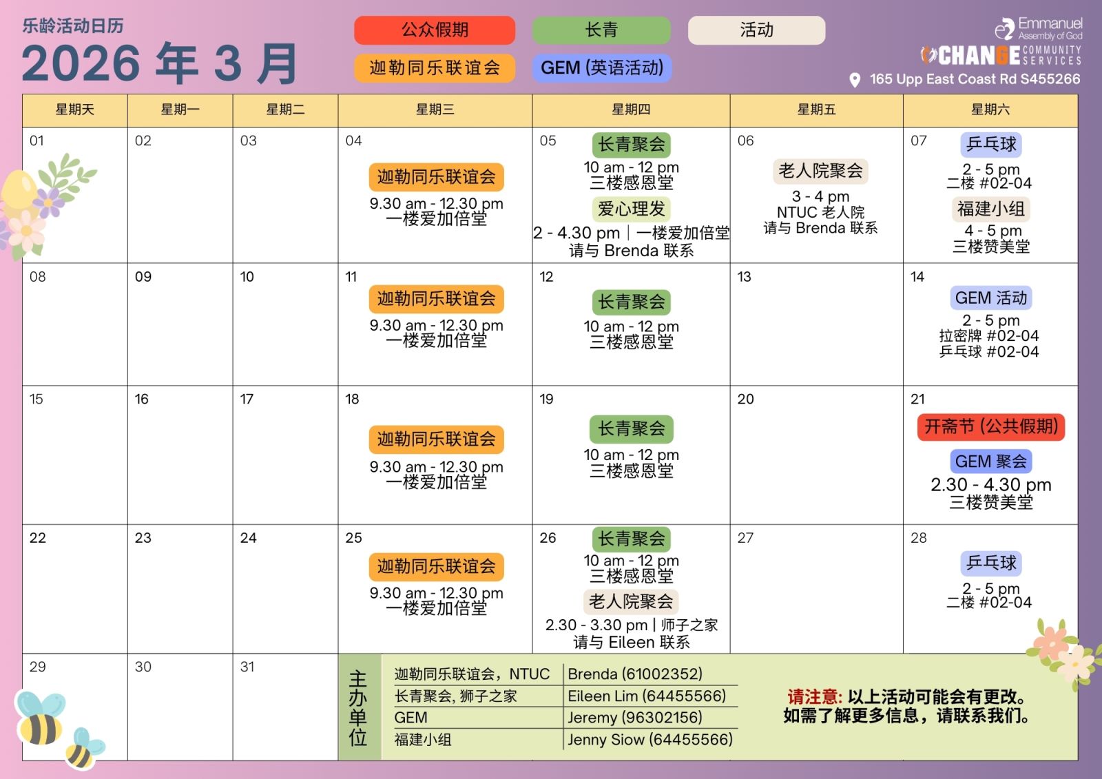 For more information, please contact the respective organisers for each activity.